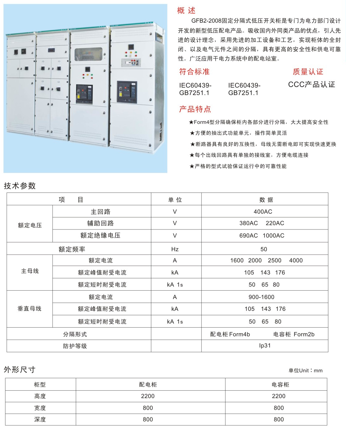 GFB2-2008固定分隔式低壓開關(guān)柜